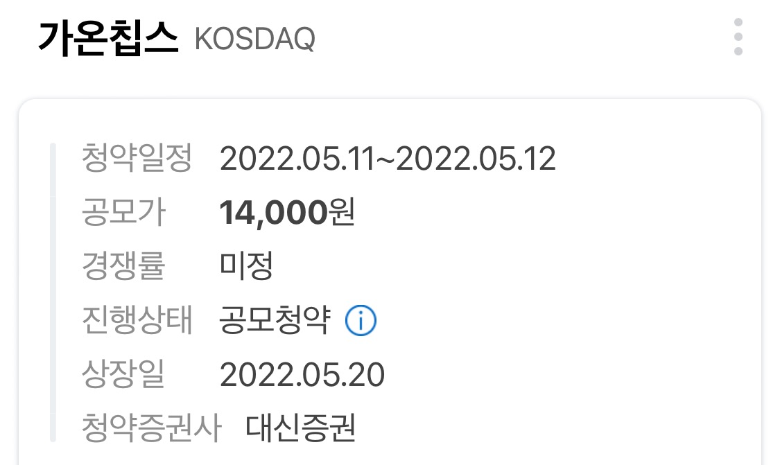 | 가온칩스 배정 (0) | 2022.05.13 |