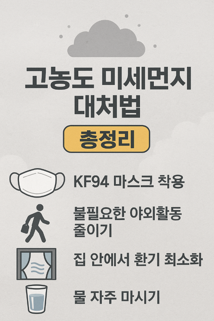 오늘은 환경부·보건 전문가들이 권고하는 고농도 미세먼지 실전 대처법을 가장 쉽고 깔끔하게 정리해서 알려드리겠습니다.