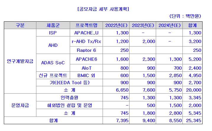이번 공모로 인해 조달한 자금중 80%는 연구개발에 이용하고 나머지 20%는 인력충원 및 해외법인설립에 이용할 예정이라고 합니다. 장기간 연구개발에 필요한 자금을 투자하여 향후 안정적인 매출 유지 및 기업의 성장 가능성을 높이기 위해서 연구개발에 많은 비용을 지출할 예정이라고 합니다.
