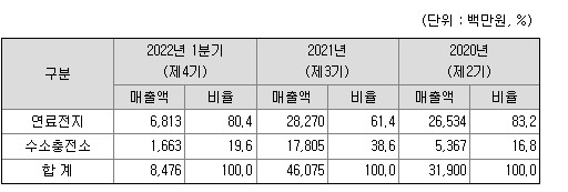 범한퓨얼셀은 연료전지와 수소충전소의 매출 비율은 8대 2정도이며, 매출에서 가장 큰 비중을 차지하는 부분은 연료전지 부분입니다. 범한퓨얼셀은 잠수함용 연료전지 모듈 사업을 시작으로 건물용 연료전지, 수소충전소 구축사업 등으로 사업을 확장하였습니다. 아직 해외시장 개척에는 두각을 나타내고 있지 않지만 2018년 스위스 PowerCell 사와 업무협력 계약을 통해 수소연료전지 사업 기술 협력 및 유럽 진출시 협력 관계를 수립하며 시장에서 경쟁력을 키워가고 있습니다.