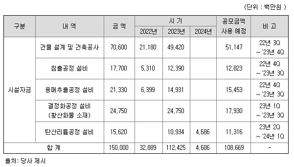 추후 변경이 될 수 있다고 하나 이번 공모자금의 경우 100% 모두 시설자금으로 이용될 예정이라고 합니다.