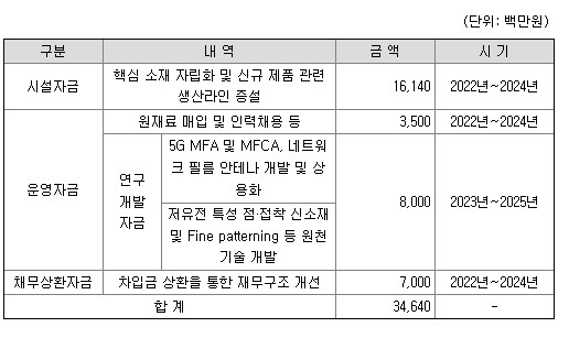 이번 공모자금중 16,140백만원은 베트남법인(ICH CUBE) 및 인도법인에 생산라인 증설을 통해 주력제품 생산능력을 확대하여 매출 증대를 위해 이용할 예정이며, 나머지 공모자금은 우수한 연구개발 인력 채용, 글로벌 IT기업 및 자동차 부품 공급사와의 협력 등에 활용할 예정이라고 합니다.