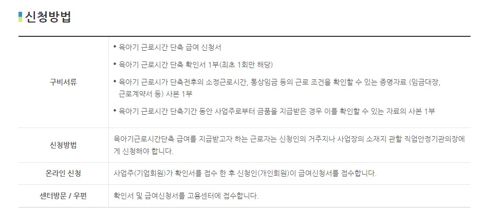 • 사업주로부터 육아기 근로시간 단축을 30일이상 부여받아야 함