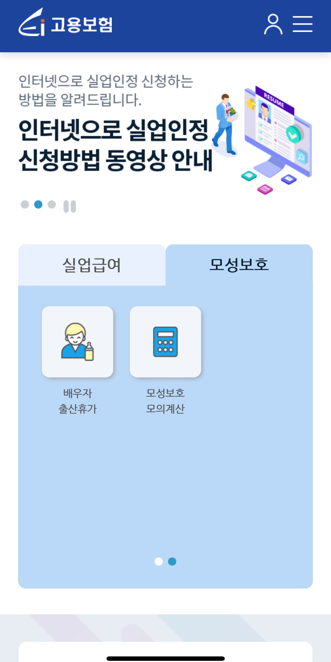 고용보험 어플깔아주시고 모성보호 눌러주시면 맨 뒤부분에 모성보호 계산기가 있습니다.