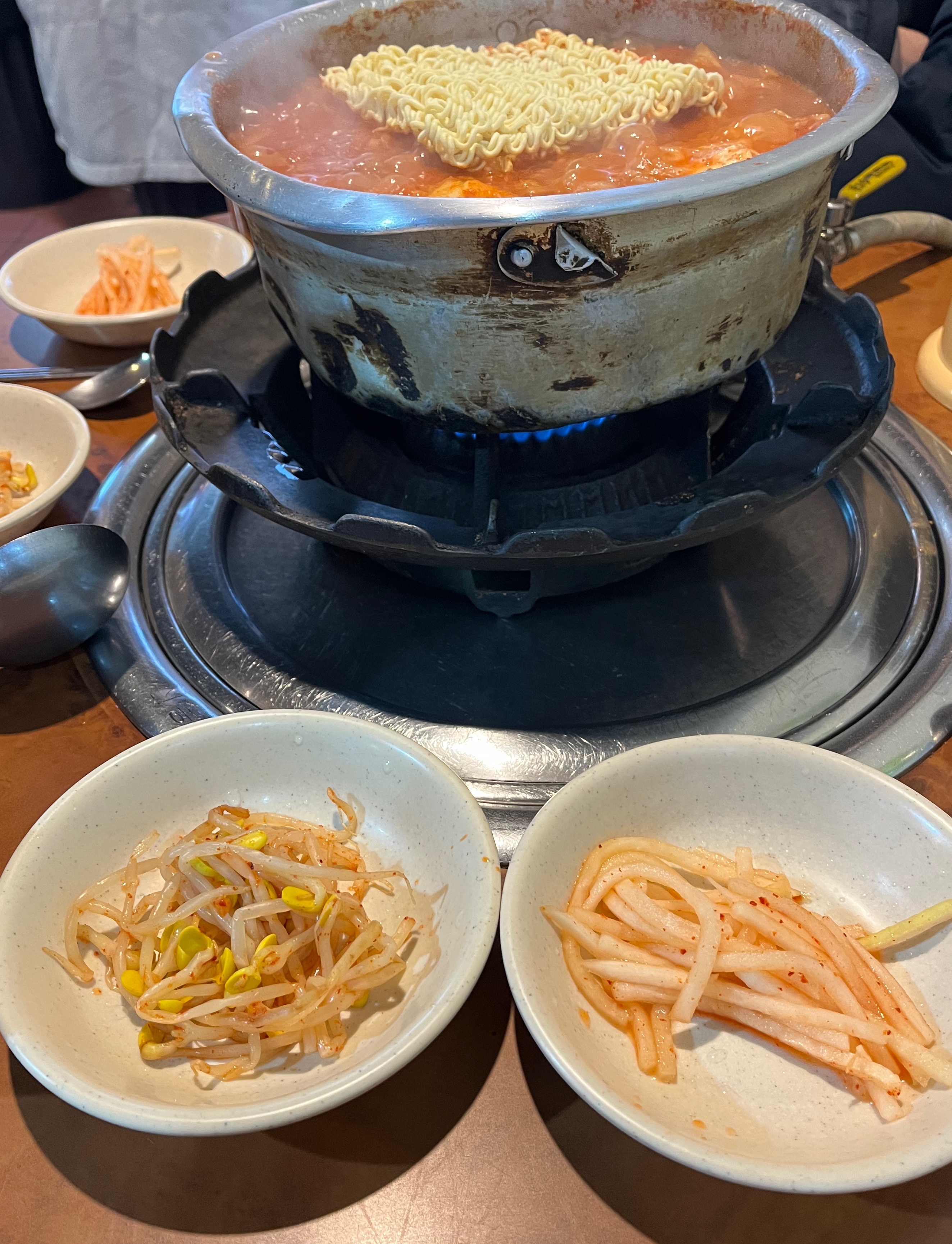 옆에 지나갈때 김치찌개 냄새에 홀려 들어갔습니다. 냄새가 워낙 좋아서 안들어갈 수가 없어요ㅋㅋ 저녁에는 고기도 팔지만 점심에는 김치전골만 주문 가능해요!