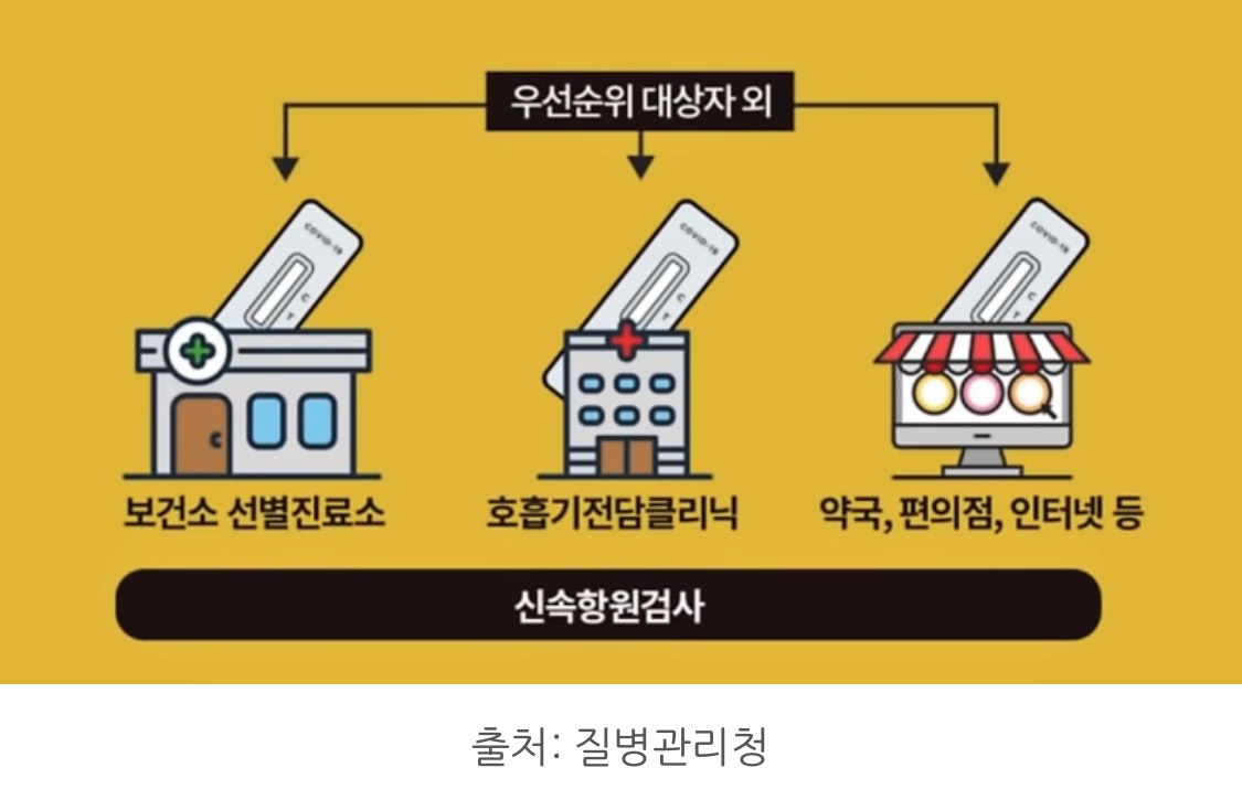 일반군은 호흡기 전담 클리닉 및 동네 의원(호흡기 진료 지정기관)에서 신속항원검사를 받아야 한다고 합니다. 동네 의원에서 검사받으시는 경우 검사료는 무료이지만 5000원 정도의 진료비가 발생한다고 합니다.