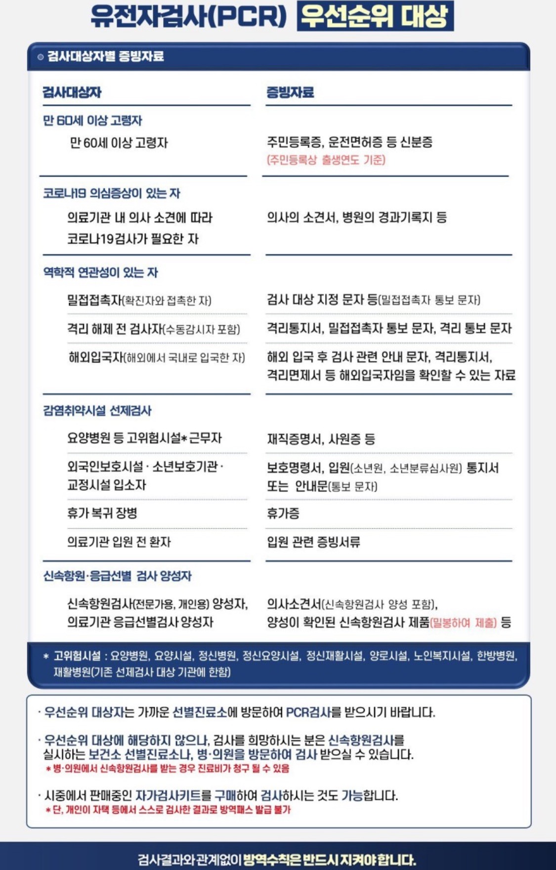 고위험군 위주로 PCR검사를 받을 수 있다고 합니다.