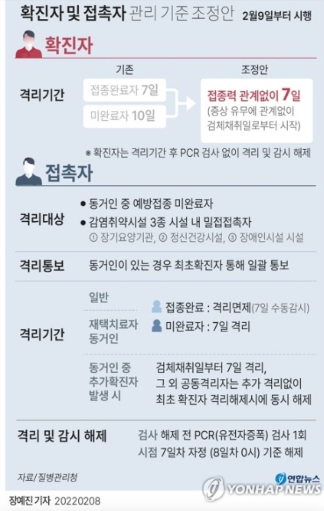 1일 확진자 수가 증가하면서 언제 어디서 코로나에 감염될지 모르는 상황이 되었습니다. 또한, 확진자가 많아지면서 격리시설 및 관리 인원이 부족해지고 있다고 합니다. 질병관리청 중앙방역대책본부는 확진자 급등에 따라 확진자 및 접촉자 관리 기준이 내일2022.02.09일부로 변경된다고 합니다. 변경사항을 함께 알아보도록 해요!