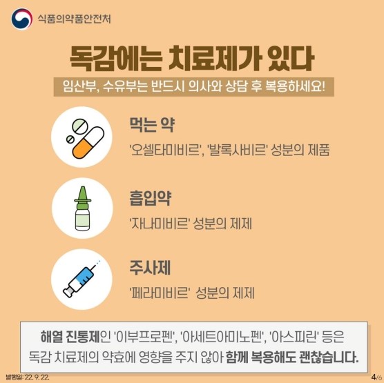 독감의 경우 자연적으로 치유가 되지 않기 때문에 병원에서 처방받은 약을 복용해주셔야 합니다.