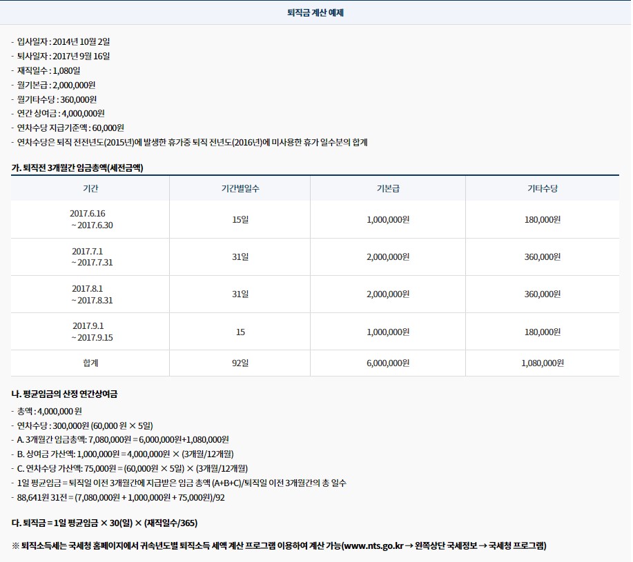 재직일수를 구하는거나 평균임금을 계산하기 어려우시기 때문에 고용노동부 퇴직금 계산기를 이용하여 쉽게 계산해보실 수 있습니다.
