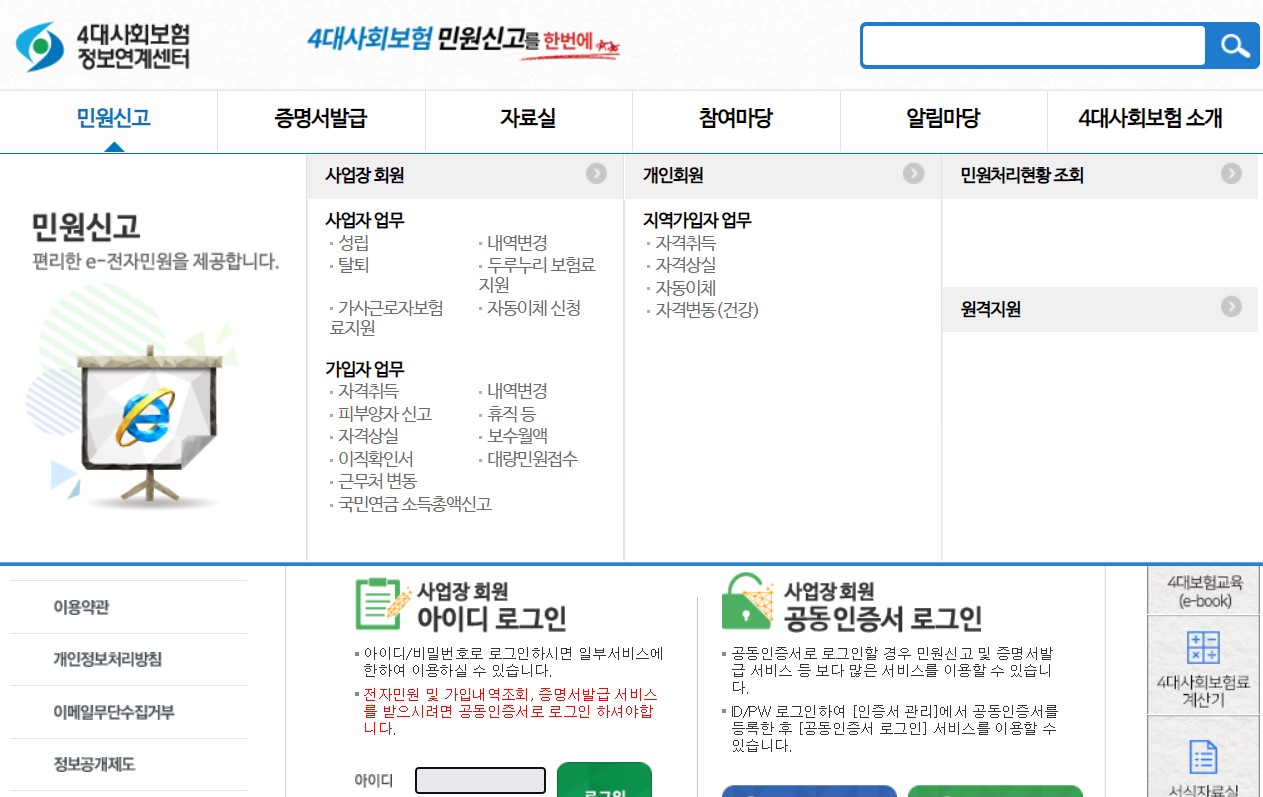 의료보험 피부양자 등록은 공단에 방문하거나 서류를 우편으로 보내서 신청할 수도 있지만 4대사대보험사이트(https://www.4insure.or.kr/ins4/ptl/Main.do)를 통하여 손쉽게 신청가능합니다.