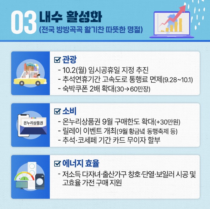 비싼 물가로 인해 추석의 부담되시는 분들을 위해 정부에서 물가 안정과 민생 안정 및 내수 활성화를 위해 민생안정대책을 내놓았습니다.