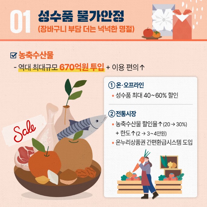 농축산물 할인율을 20%에서 30%로 올리고 한도도 2만원에서 3~4만원으로 상향합니다.